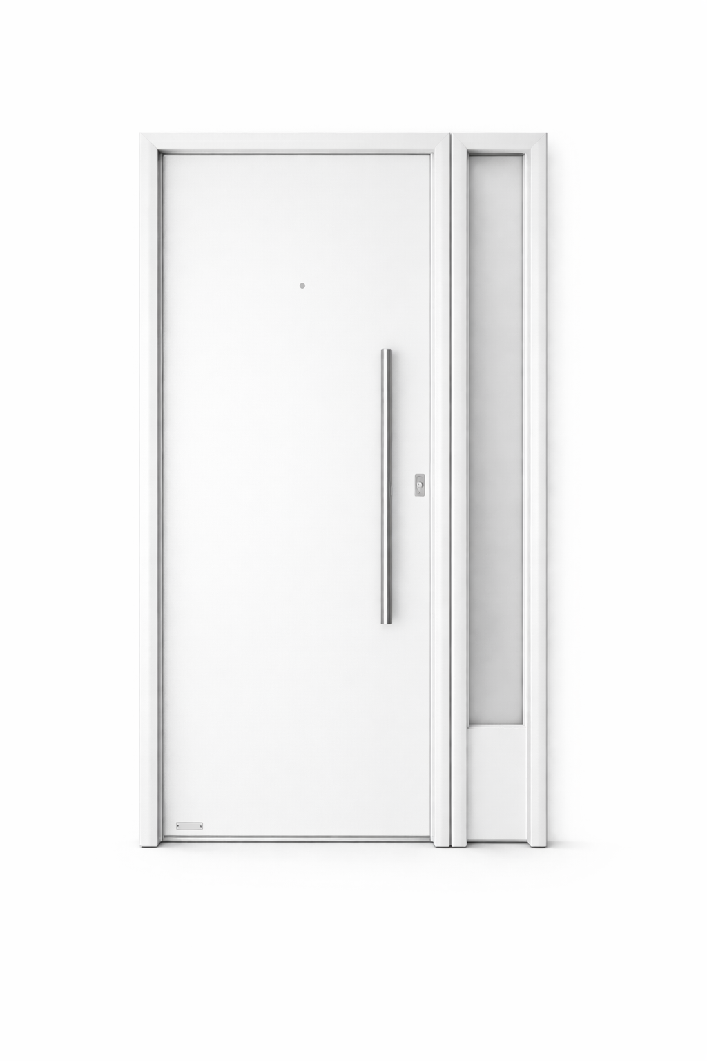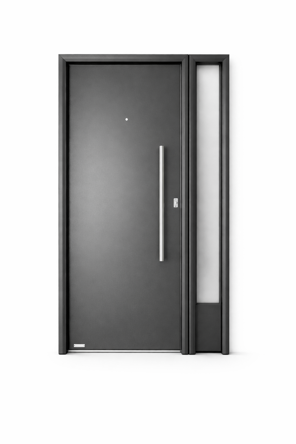 Su sistema de doble chapa inyectada proporciona un excelente aislamiento térmico y acústico, además de una mayor resistencia estructural. Incorpora un elegante vidrio lateral fijo tipo Stipolite, que permite el paso de luz natural manteniendo la privacidad del interior.