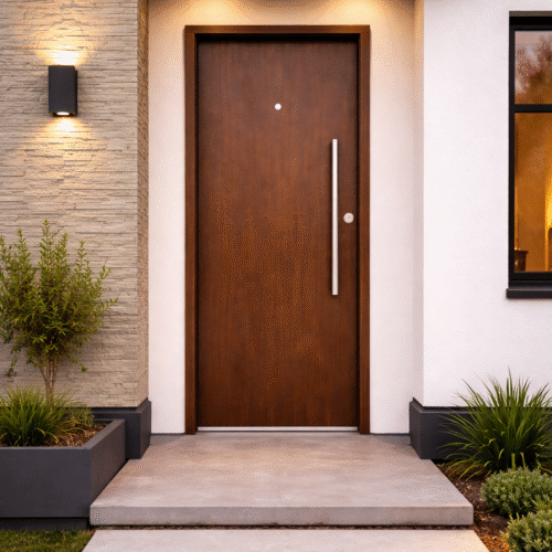 Una puerta ideal para quienes buscan seguridad, diseño moderno y la elegancia clásica del acabado madera en una solución duradera.