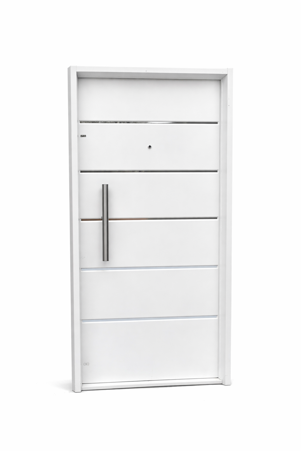 Incorpora bisagras tipo munición embutidas en el marco, lo que mejora la resistencia y el funcionamiento, junto con mirilla óptica para control visual del exterior sin necesidad de abrir la puerta.